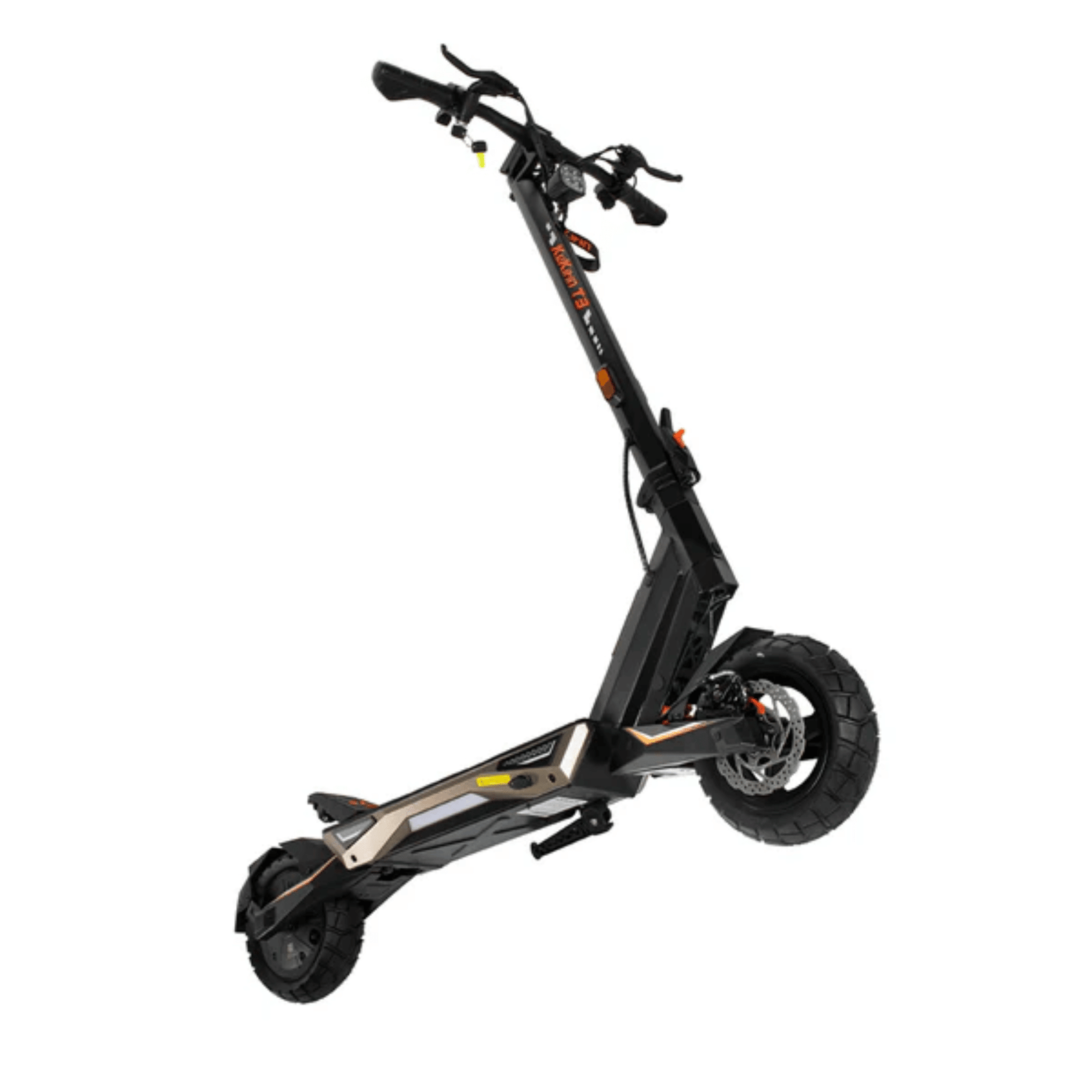 La KuKirin T3 est équipée de pneus 10 pouces tout-terrain assurant une bonne adhérence et stabilité. Son système de double frein à disque + frein électronique garantit un freinage sécurisé et réactif.